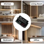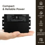 With its ultra-compact aluminum housing, this driver fits seamlessly into tight spaces — behind wall panels, inside cabinetry, under shelves, or within ceiling coves — providing a steady, flicker-free 24V power source for LED lighting systems.
