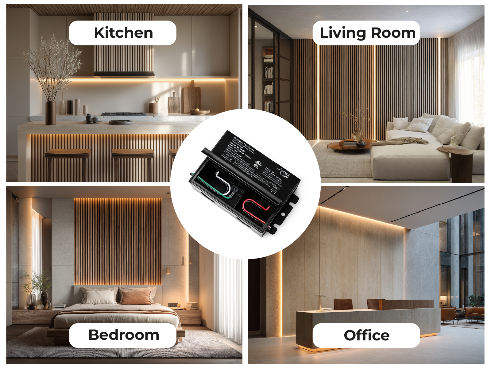 Note: Not compatible with 0–10V, DALI, or DMX systems. Intended for standard U.S. residential and smart-home dimmers.