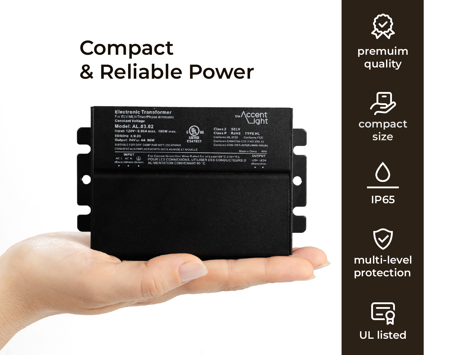 TheAccentLight 96W driver is engineered to maintain consistent output and long-term stability even in challenging conditions.